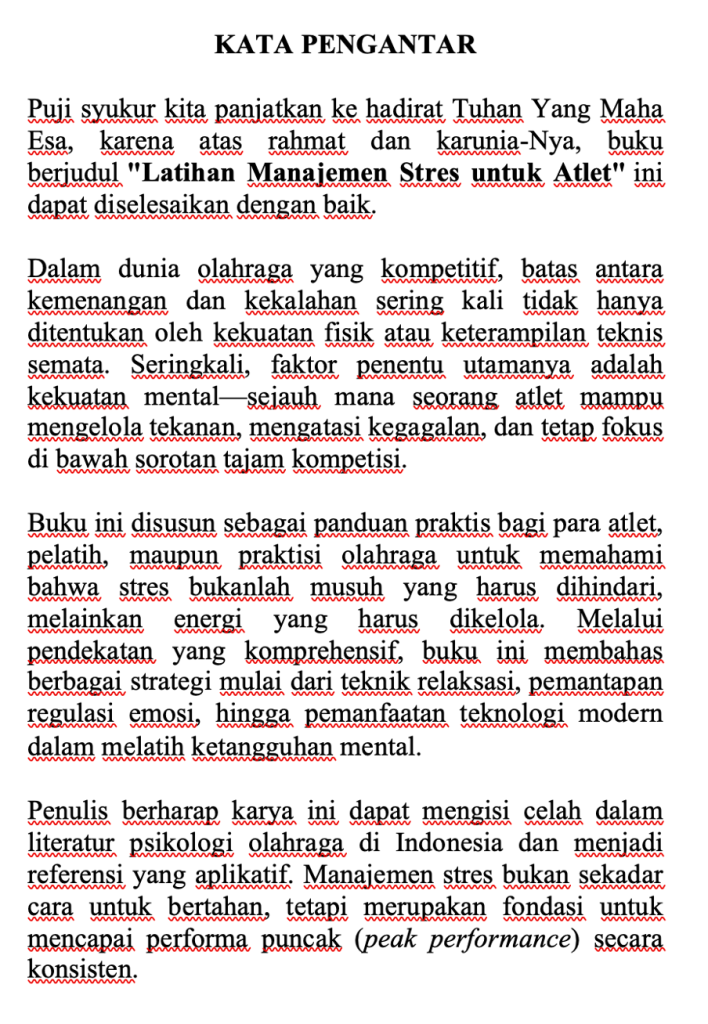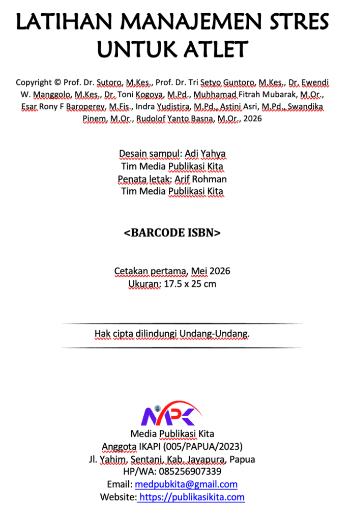 Dalam dunia olahraga yang kompetitif, batas antara kemenangan dan kekalahan sering kali tidak hanya ditentukan oleh kekuatan fisik atau keterampilan teknis semata. Seringkali, faktor penentu utamanya adalah kekuatan mental—sejauh mana seorang atlet mampu mengelola tekanan, mengatasi kegagalan, dan tetap fokus di bawah sorotan tajam kompetisi. Buku ini disusun sebagai panduan praktis bagi para atlet, pelatih, maupun praktisi olahraga untuk memahami bahwa stres bukanlah musuh yang harus dihindari, melainkan energi yang harus dikelola. Melalui pendekatan yang komprehensif, buku ini membahas berbagai strategi mulai dari teknik relaksasi, pemantapan regulasi emosi, hingga pemanfaatan teknologi modern dalam melatih ketangguhan mental. Penulis berharap karya ini dapat mengisi celah dalam literatur psikologi olahraga di Indonesia dan menjadi referensi yang aplikatif. Manajemen stres bukan sekadar cara untuk bertahan, tetapi merupakan fondasi untuk mencapai performa puncak (peak performance) secara konsisten.