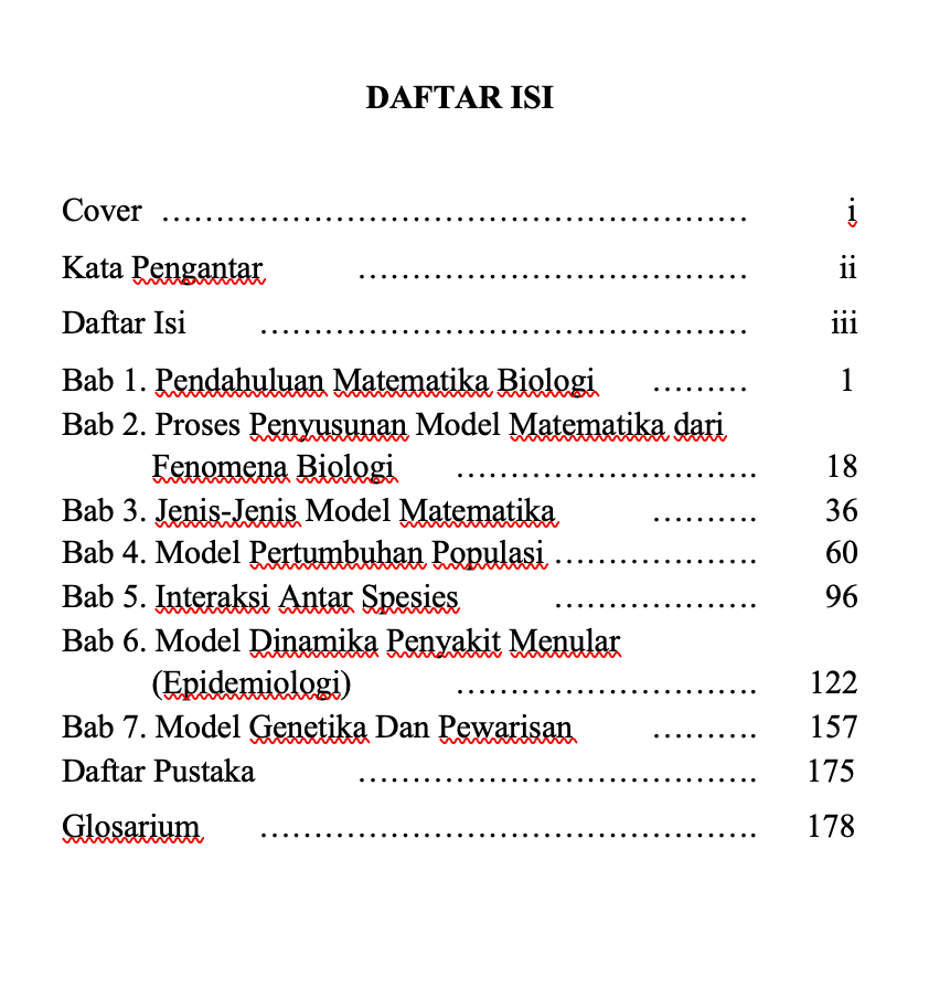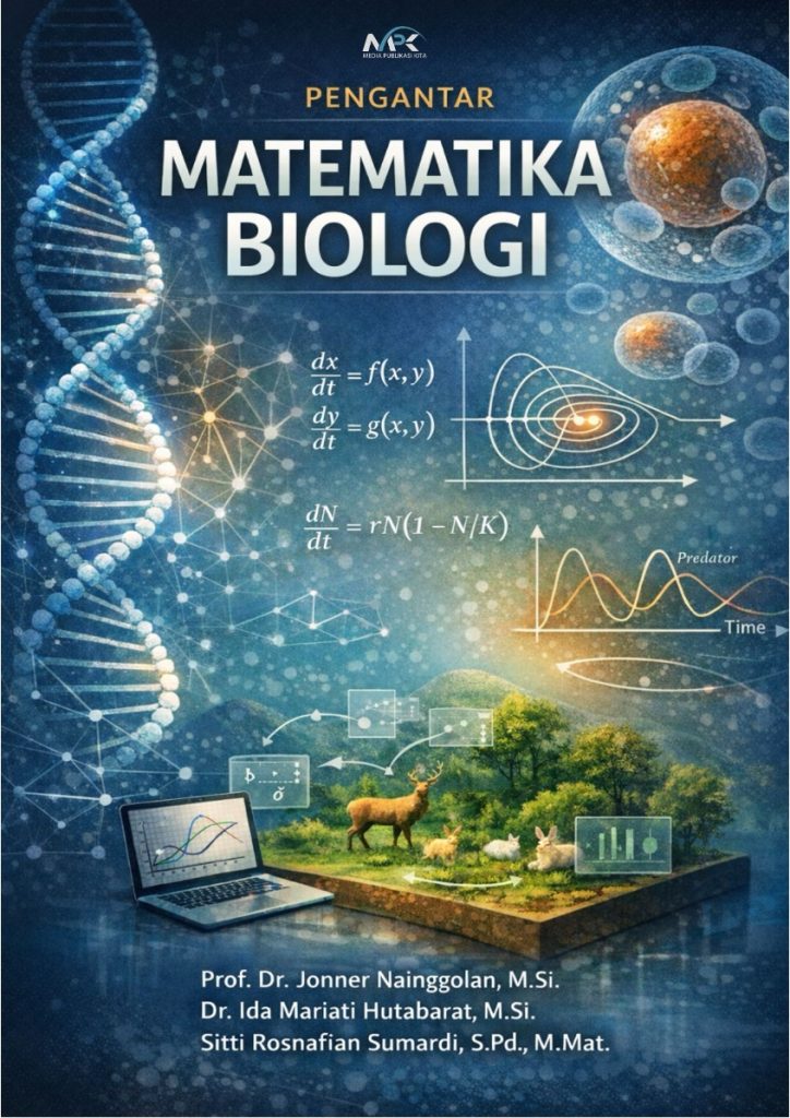 Buku yang membahas pengantar matematika biologi masih sangat jarang tersaji di lapangan, terutama yang berbahasa Indonesia. Oleh karena itu, buku ini sengaja ditulis untuk mengisi celah kekosongan tersebut. Matematika biologi adalah cabang ilmu yang menggabungkan konsep matematika dengan fenomena biologi untuk memahami, memodelkan, dan memprediksi sistem kehidupan. Bidang ini menggunakan alat seperti persamaan diferensial, statistik, dan simulasi komputer untuk menganalisis proses seperti pertumbuhan populasi, penyebaran penyakit, dan interaksi antarspesies. Dengan pendekatan ini, matematika biologi membantu menghasilkan solusi ilmiah dalam bidang kesehatan, ekologi, dan bioteknologi. Buku ini dapat digunakan sebagai referensi pada Mata Kuliah: Matematika Biologi, dan Matematika Epidemiologi.  Buku ini juga dapat digunakan sebagai referensi skripsi mahasiswa yang topiknya pada sistem dinamik dan matematika biologi.  Buku ini menyajikan: Ruang lingkup matematika biologi,  proses penyusunan model matematika dari fenomena biologi, jenis-jenis model matematika, model pertumbuhan populasi, interaksi antar spesies, model dinamika penyakit menular (epidemiologi), dan model genetika dan pewarisan.